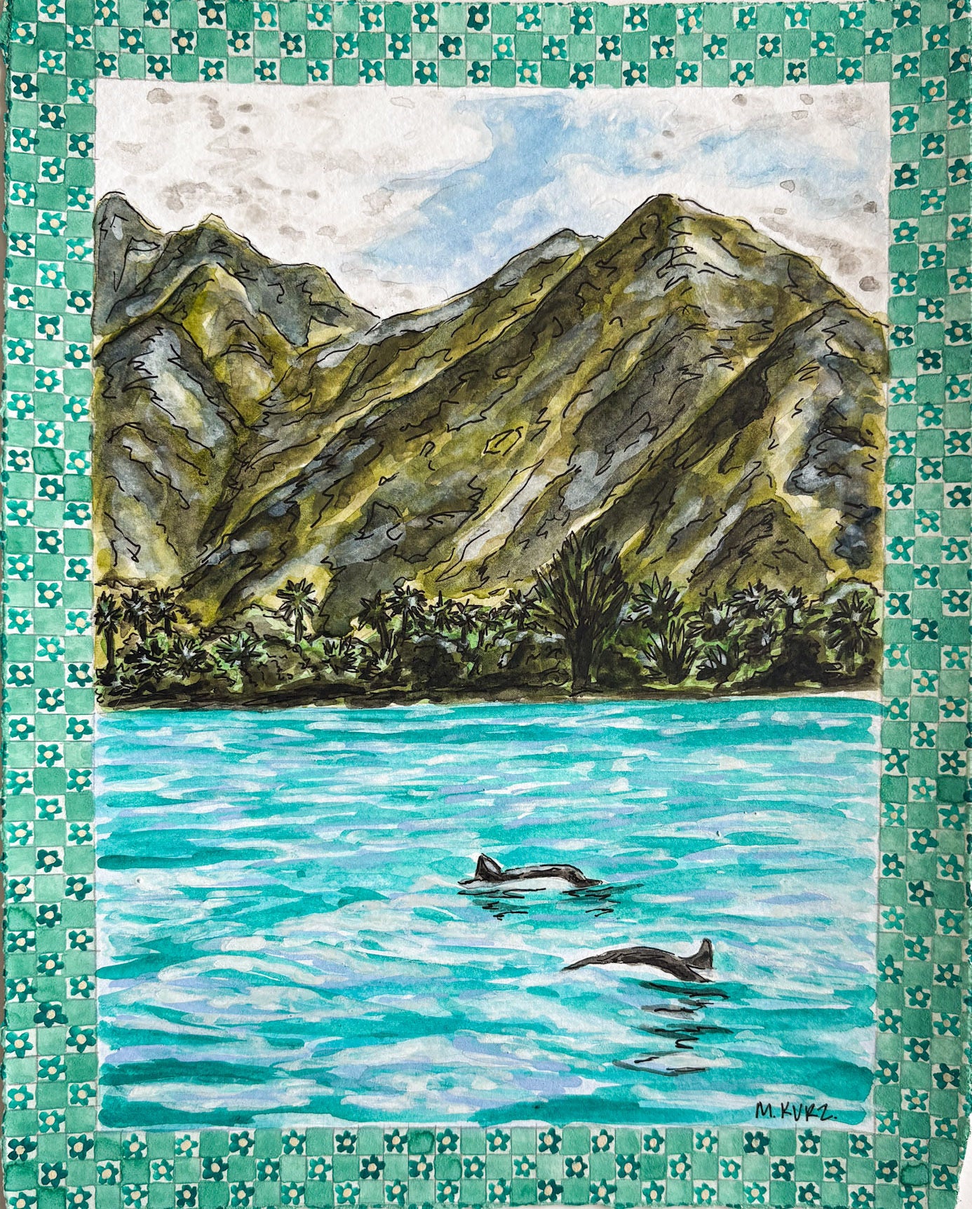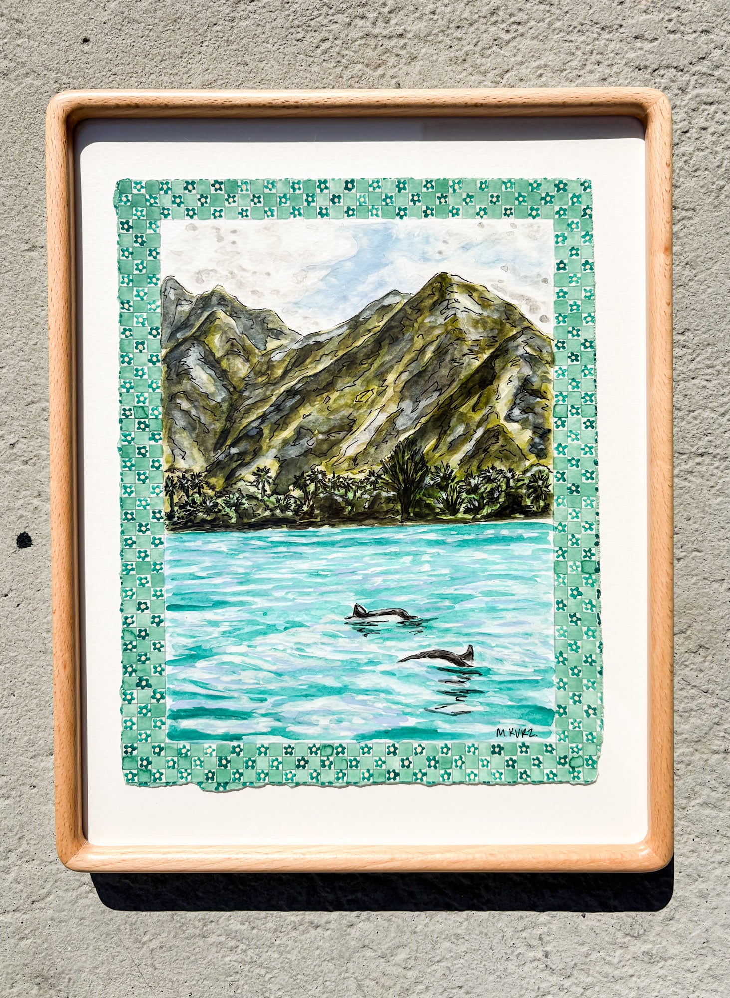 Original watercolor and ink on cold press hand torn 9 x 11.5 inch paper with 11.5 x 14.5 inch beech wood frame, 2025.